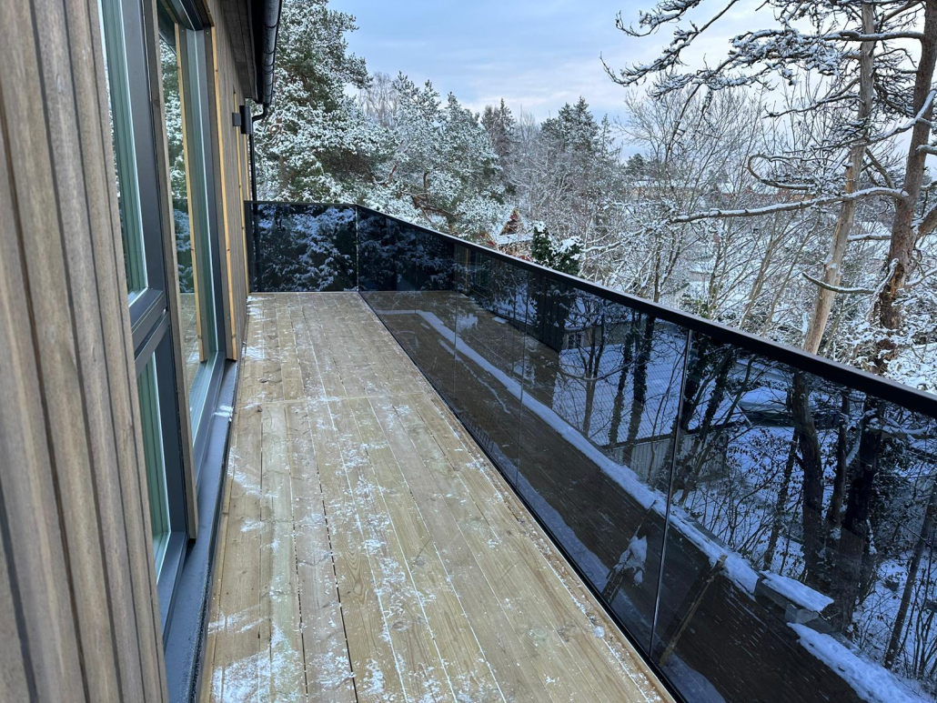 - Sikkerhet: Glassrekkverk gir en solid barriere uten å ødelegge utsikten. Våre rekkverk har høye toleranser mot horisontal belastning, i tillegg til at vi bruker kun herdet og laminert glass.